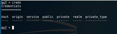 'creds'命令用于管理数据库中目标的发现和使用的凭据。 运行不带选项的命令将显示当前保存的凭据。