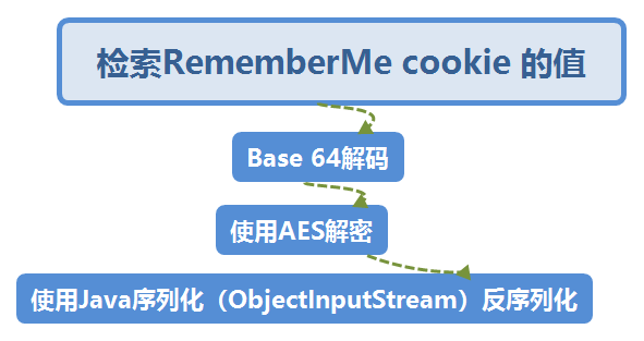 shiro反序列化攻击其实也就是对shrio-550漏洞的利用过程,网上对于这个漏洞的复现过程的相关记录还是挺多的,有兴趣的同学可以去找找相关的资料进行一个复现。这里我简单说说为什么会存在shiro反序列化攻击,根据Apache官网的资料,默认情况下shiro会使用CookieRememberMeManager。它会对用户的身份进行序列化,加密和编码,以供以后检索。