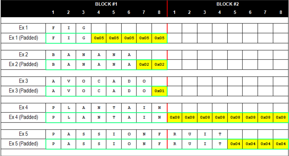 ①:明文 0x01②:明文 0x02 0x02③:明文 0x03 0x03 0x03...⑧:0x08 0x08 0x08 0x08 0x08 0x08 0x08 0x08