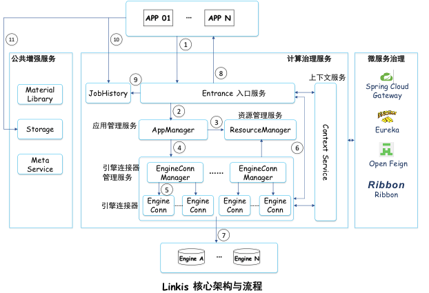 要更详细的了解计算任务通过 Linkis 的提交执行过程,我们先来看看 Linkis 核心的“计算治理服务”部分的内部架构和流程。如下图 10: