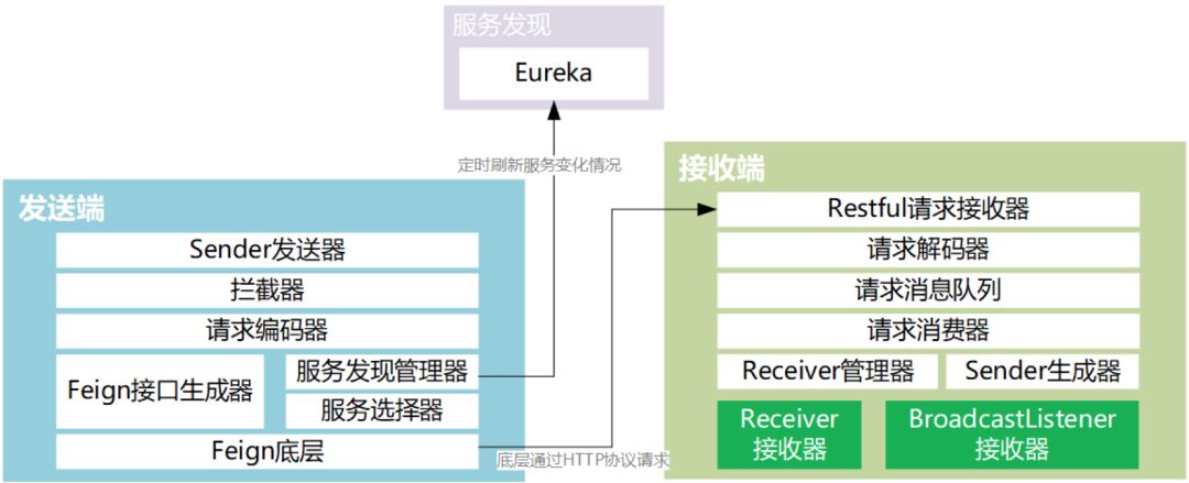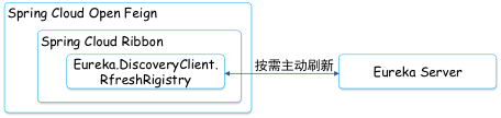 为此我们对 Spring Cloud Ribbon 做了改造,在其中封装了 Eureka client 的微服务实例状态刷新方法,并把它做成满足条件主动请求刷新,而不会再频繁的定期轮询。从而在满足时效的同时,大大降低了状态获取的成本。如下图 13:
