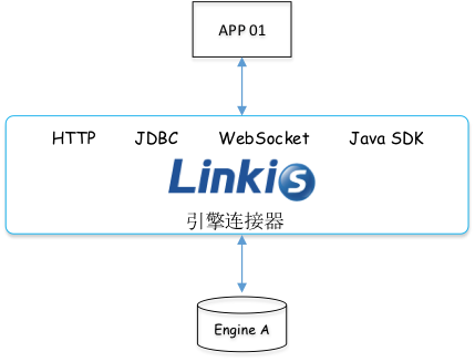 Linkis 作为计算中间件,在上层应用和底层引擎之间,构建了一层中间层。上层应用所有计算任务,先通过 HTTP、WebSocket、Java 等接口方式提交给 Linkis,再由 Linkis 转交给底层引擎。原有的上层应用以 CS 模式直连底层引擎的紧耦合得以解除,因此实现了解耦。如下图 16 所示: