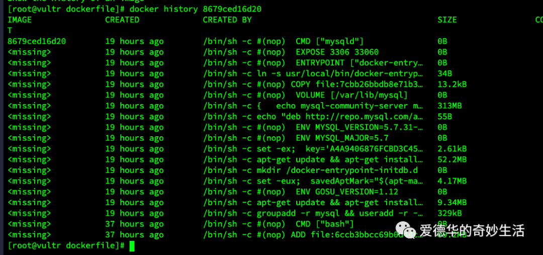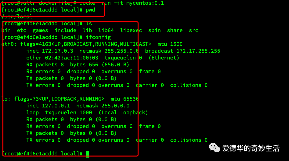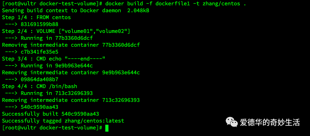 #1. 编写DockerFile的文件FROM centosMAINTAINER zhangxi<antonyzhangdc@qq.com>ENV MYPATH usr/localWORKDIR $MYPATHRUN yum -y install vimRUN yum -y install net-toolsEXPOSE 80CMD echo "--------end--------"CMD /bin/bash#2. 通过这个文件构建镜像#命令# -f 文件路径 -t 目标文件名(生成的镜像名) :[tag][root@vultr dockerfile]# docker build -f mydockerfile-centos -t mycentos:0.1 .#3. 测试运行