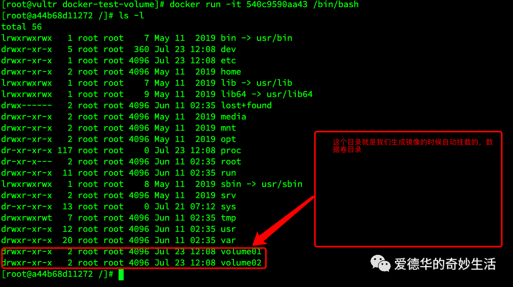 [root@vultr docker-test-volume]# docker run -it 540c9590aa43 bin/bash