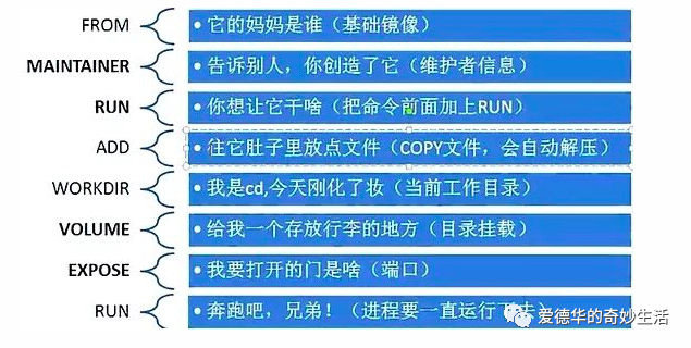 通过这个脚本可以生成镜像,镜像是一层一层的,脚本一个个的命令,每个命令都是一层