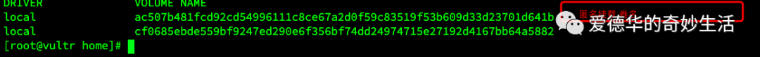 #匿名挂载—v 容器内路径docker run -d -P --name nginx01 -v etc/nginx nginx#查看所有的卷的情况[root@vultr home]# docker volume ls#这就是匿名挂载,我们在-v只写了容器内的路径,没有写容器外的路径!