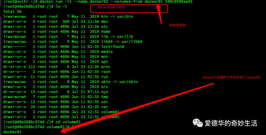 一句话:容器的持久化和同步操作,容器间也是可以数据共享的