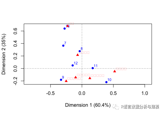 7.在解释图形变量类别间的关系时,要注意所选择数据标准化方式,不同的标准化方式会导致类别在图形上的不同分布