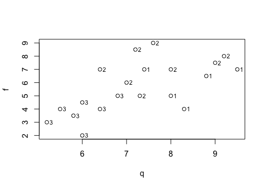 lda(g3 ~ q + f + p, prior = c(1, 1, 1)/3)