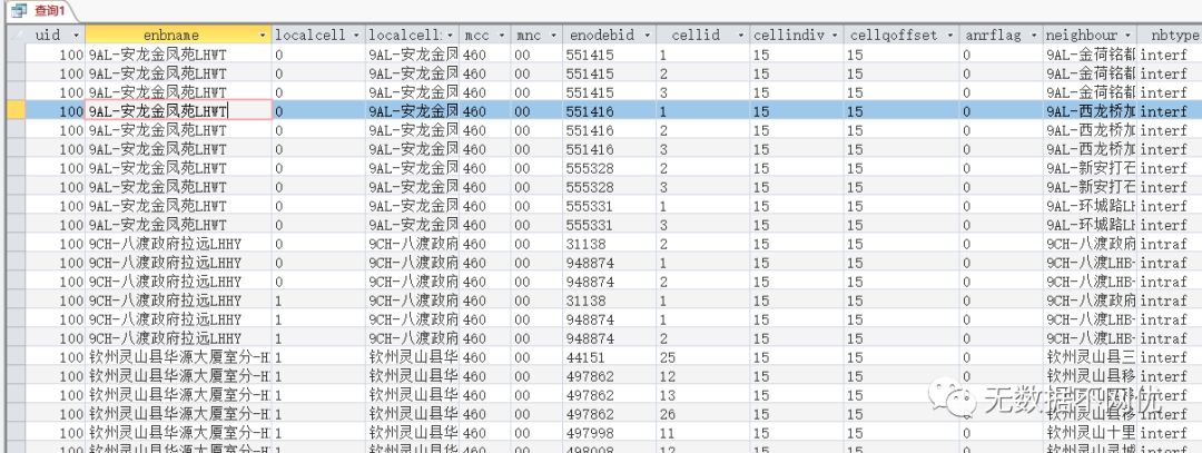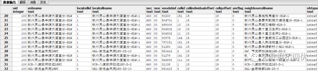 结合上一篇中的qrycellinfo查询,我们就可以整理出一个完整的全网LTE邻区关系表了:
