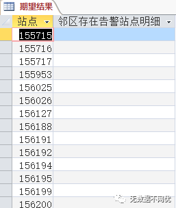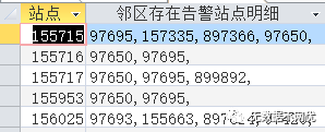 首先我们需要创建一张表,将所有邻区有告警所涉及到的站点生成一个清单,效果是这样的: