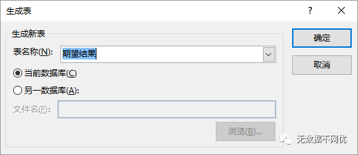 怎么实现呢?依然是创建查询,添加表“告警清单”,点击汇总按钮,并修改查询类型为生成表,这时会提示你输入生成新表的名字,填入“期望结果”后确定;