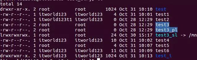 命令chown用于修改文件的所属用户信息,比如将属于root的文件test3改为属于itworld123,那么可以执行如下命令。