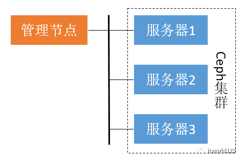 ceph-deploy建立了一种分布式的集群管理方式,使用ceph-deploy可以远程的安装Ceph软件包、创建集群、添加MON和OSD等,很多操作可以通过一个管理节点完成,而不需要分别登录到集群的各个节点上进行管理。如图为ceph-deploy管理节点与Ceph集群的关系示意图。