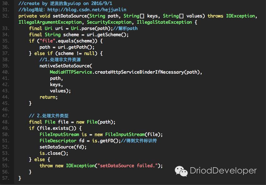 先看看如果送的setDataSource中的uri是文件类型: