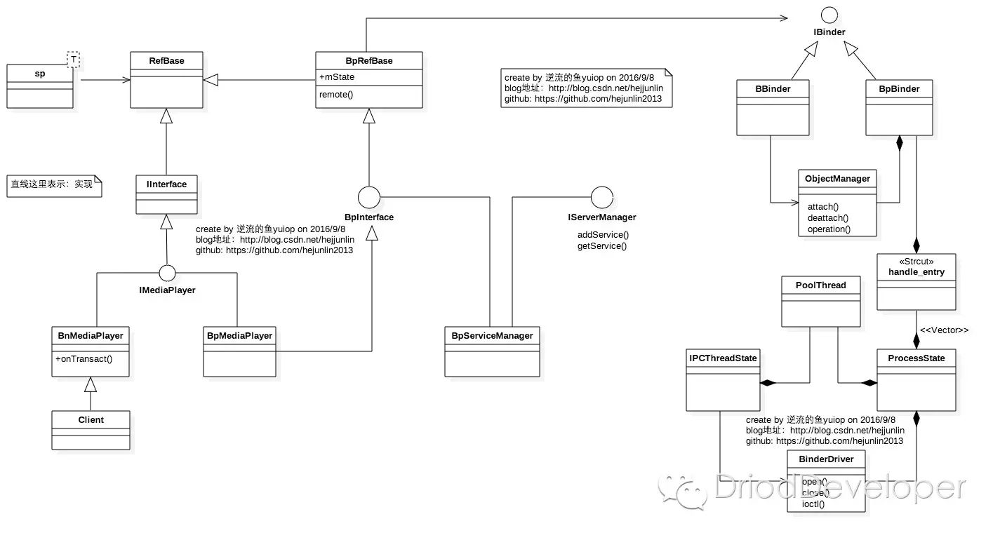 BpRefBase中有一个mRemote(BpBinder)用来与Binder驱动交互用的。