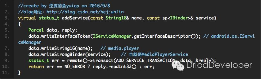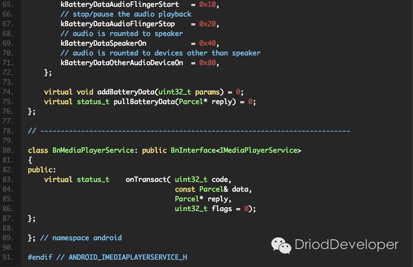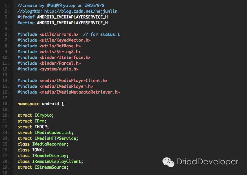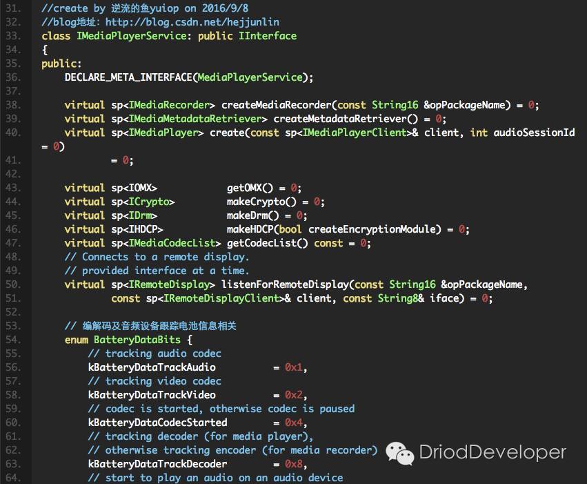 MediaPlayerService包含的功能不只是Client, 还有AudioOutput,AudioCache,MediaConfigClient功能。MediaPlayerService就是一个媒体服务的窗口(Driver有点类似一个场地,在这个场地,沟通好信息),MediaPlayerService把生意谈好,合同签回来,再根据合同上的要求,安排不同的开人发员去做。第一时间获得博客更新提醒,以及更多android干货,源码分析,欢迎关注我的微信公众号,扫一扫下方二维码或者长按识别二维码,即可关注。