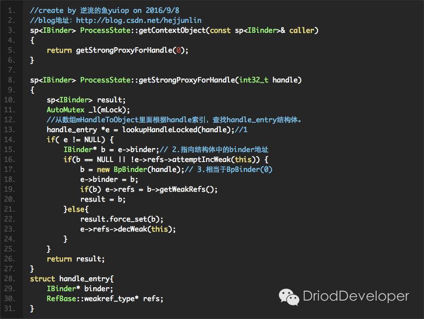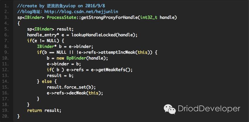 new 了一个BpBinder,并将其保存起来,这样下次需要从ServiceManager请求获取到相同句柄的时候就可以直接返回了。