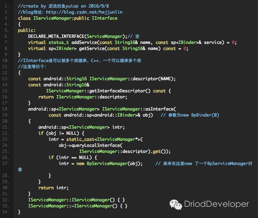 位于frameworks/base/include/binder/IInterface.h中,有如下代码: