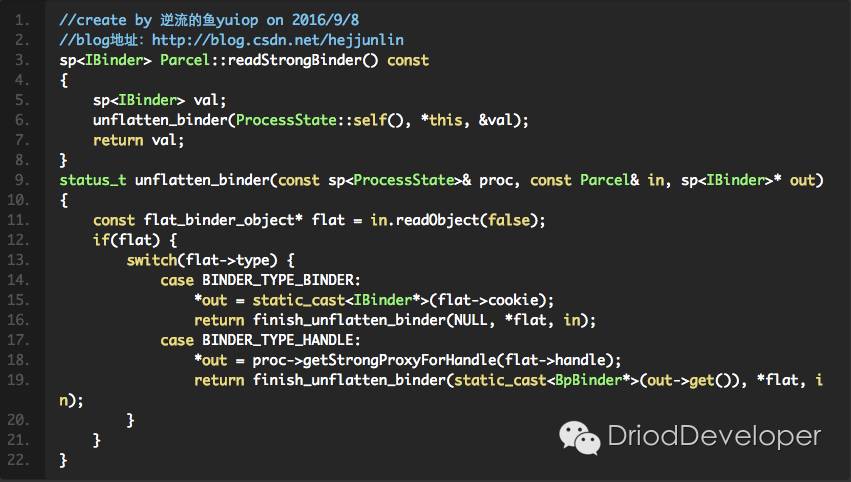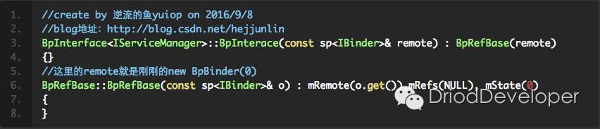 总结上述代码:根据句柄handle(0)创建一个new BpBinder(0),根据这个BpBinder创建了一个BpServiceManager代理。