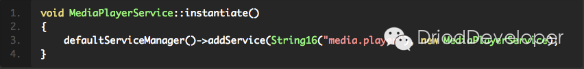 MediaPlayerService::instantiate();//实例化MediaPlayerService
