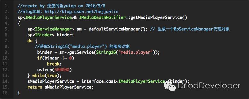 最后根据这个返回的BpBinder获得MediaPlayerService的代理: