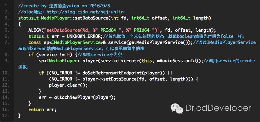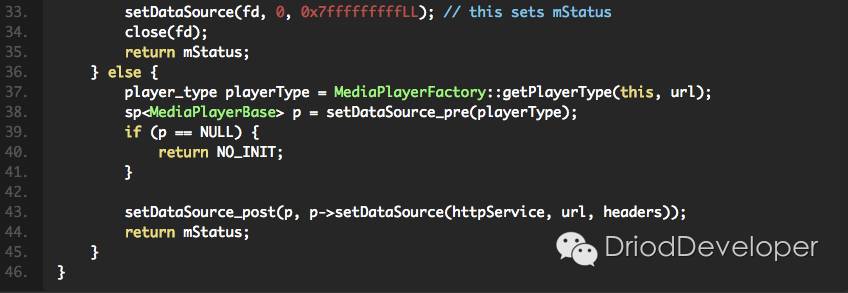 Client在MediaPlayerService.h中,那接着看下MediaPlayerService中的实现,实现过程中调用过了MediaPlayerService类的一些函数,同样回到setDataSource