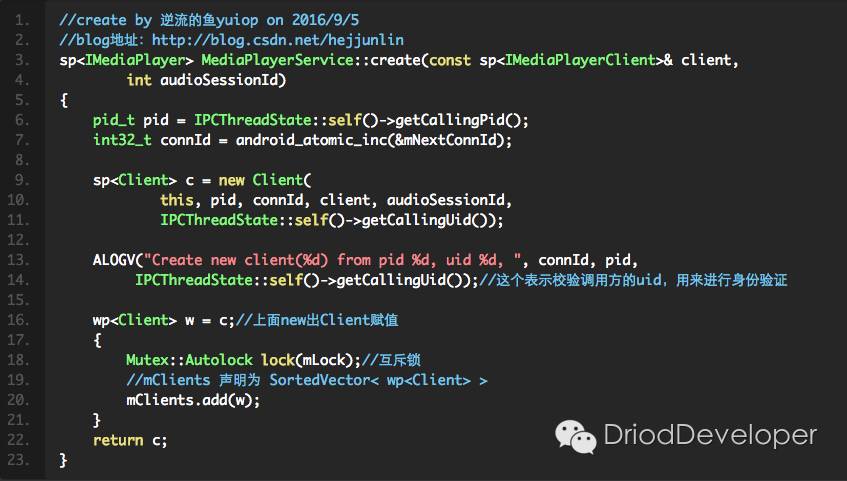 Client是MediaPlayerService内部的一个类,我们从上面代码已知,因为MediaPlayerService运行在服务端,故Client也是运行在服务端。