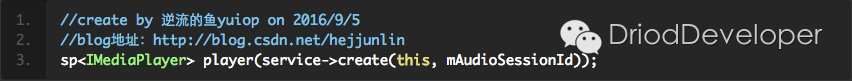 对应看下MediaPlayerService.cpp中createt函数,这里说下MediaPlayerService.cpp位置,6.0源码中是在frameworks/av/media/libmediaplayerservice/MediaPlayerService.cpp中。如下: