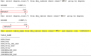 建议应用对2.5章节的表和索引的并行度进行确认,并修改并行度为1.当需要使用并行时,在SQL中使用hint来指定并行度而不是交给ORACLE控制