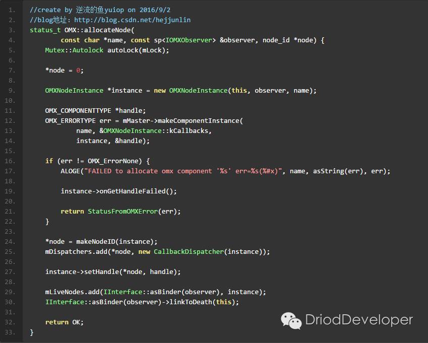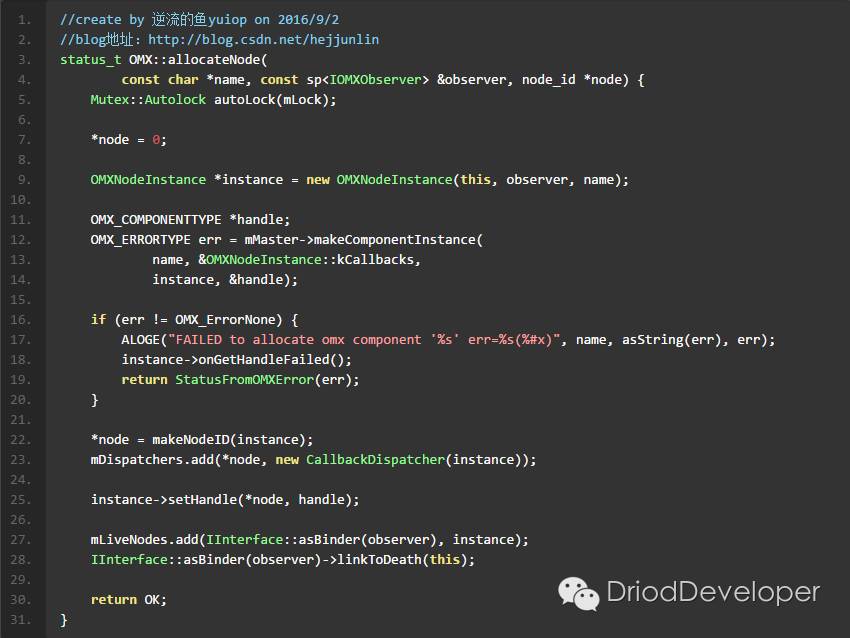 继续顺着前面的OMXCodec::Create介绍。看一下allocateNode