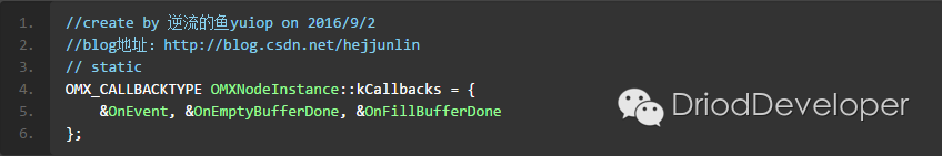 kCallbacks实际就是struct OMX_COMPONENTTYPE和struct OMX_CALLBACKTYPE的具体实现。