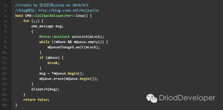 9、CallbackDispatcher用于调度处理回调函数传回的消息。OMXNodeInstance和CallbackDispatcher一一对应,协同工作,完成不同实例的消息处理。