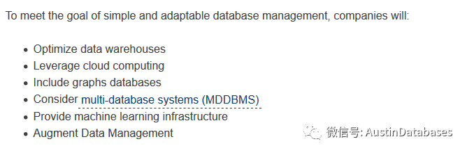其中图中的 mulit-database system MDDBMS 貌似之前没有看见过,查了一下,其实是一个老概念,大白话就是一个公司的多种数据库,强调使用不同的数据库来满足不同的业务,一切以业务为重。