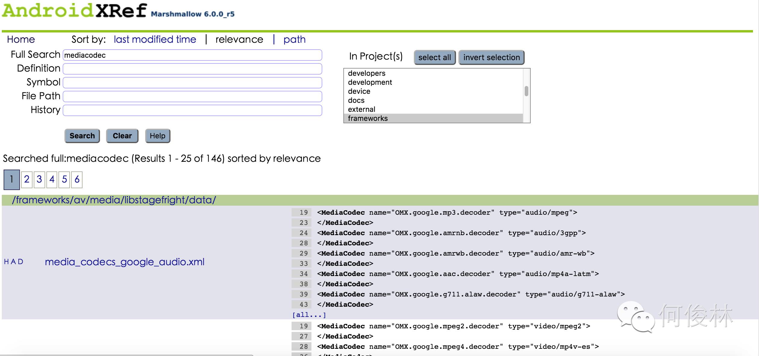 点击”search“,会显示所有包含mediacodec字符(忽略大小写)的结果,即使是注释也会显示出来,如下图,点击对应的链接会打开包含mediacodec所在的文件夹