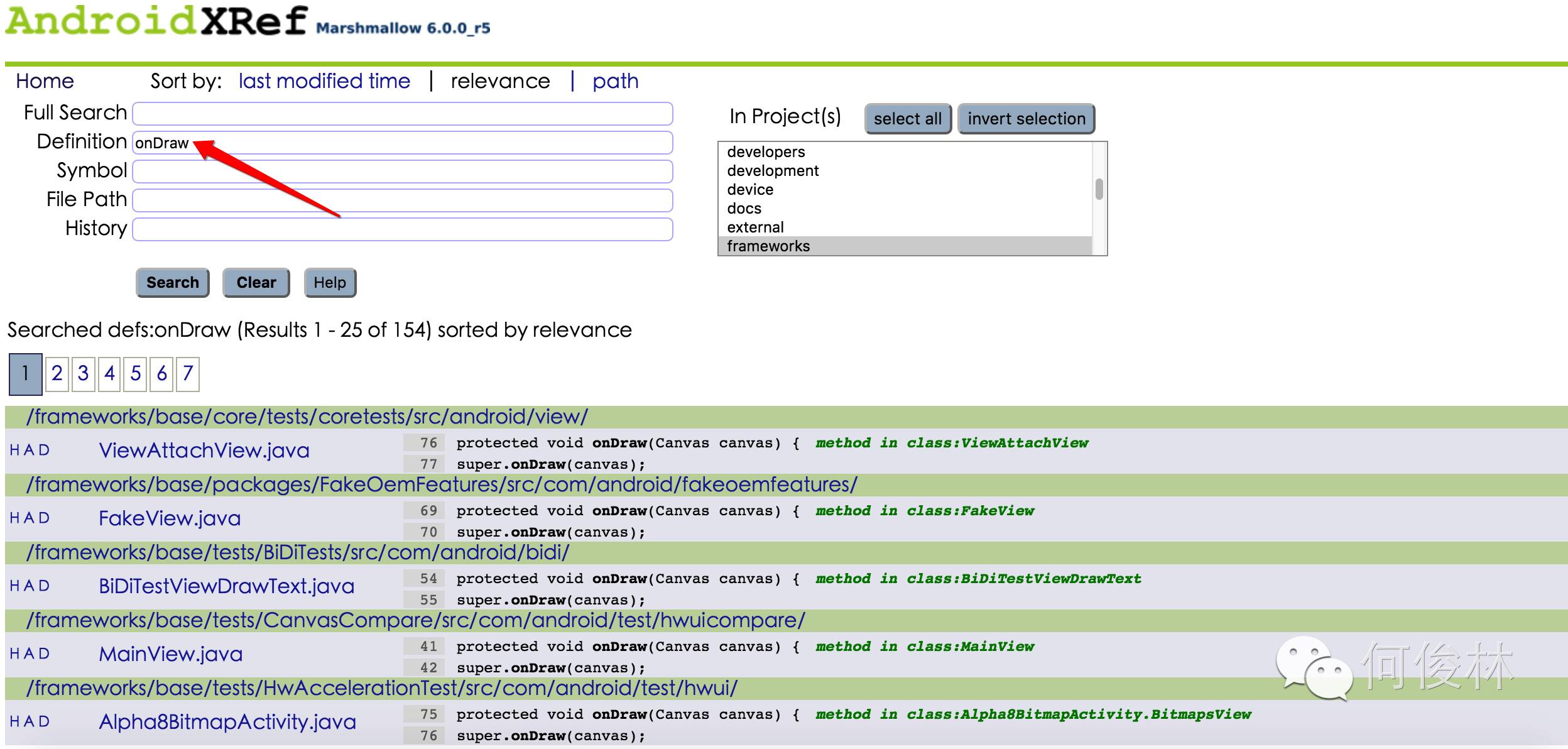 Definition:搜索符号定义相关的代码,例如搜索 ondraw 函数的定义,显示结果如图