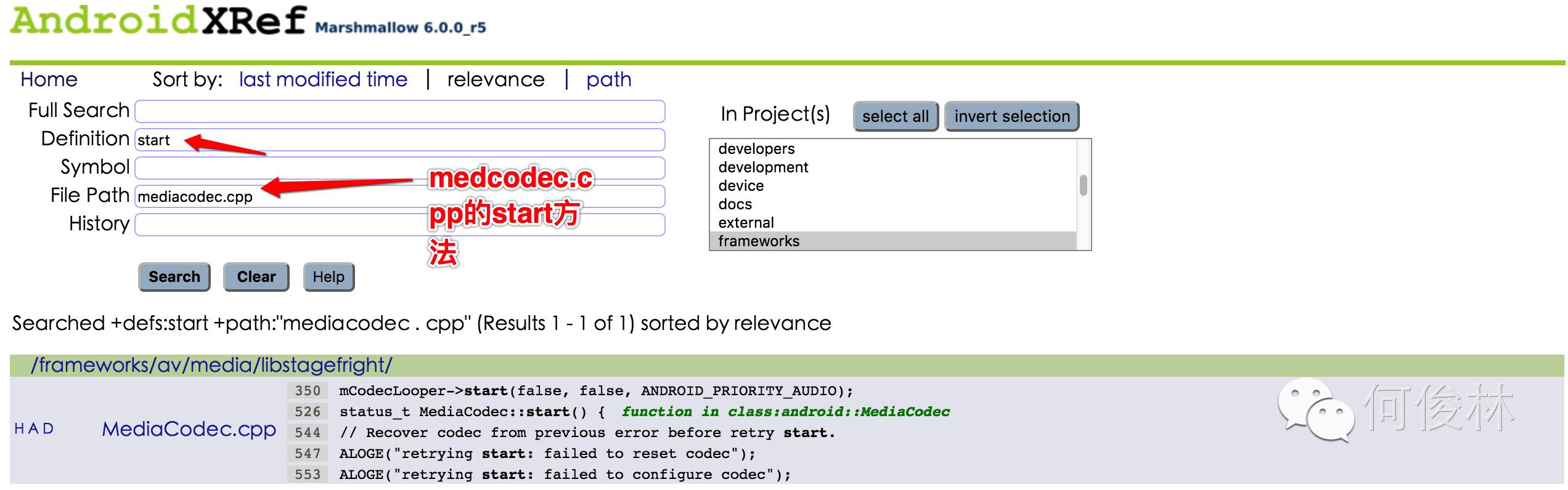 如搜索mediacodec.cpp中的start函数,如图所示: