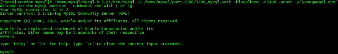 /home/mysql/mysql-5.6.46/bin/mysql -S home/mysql/port-3306/3306_mysql.sock -hlocalhost -P3306 -uroot -p'sqlroad'