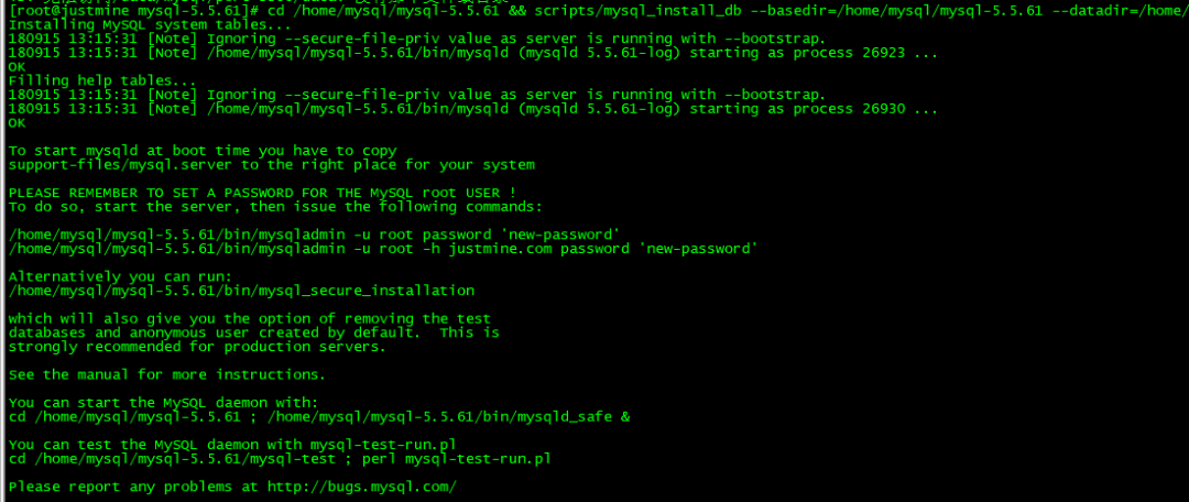 cd home/mysql/mysql-5.6.46 && scripts/mysql_install_db --basedir=/home/mysql/mysql-5.6.46 --datadir=/home/mysql/port-3306/data --defaults-file=/home/mysql/port-3306/my.cnf