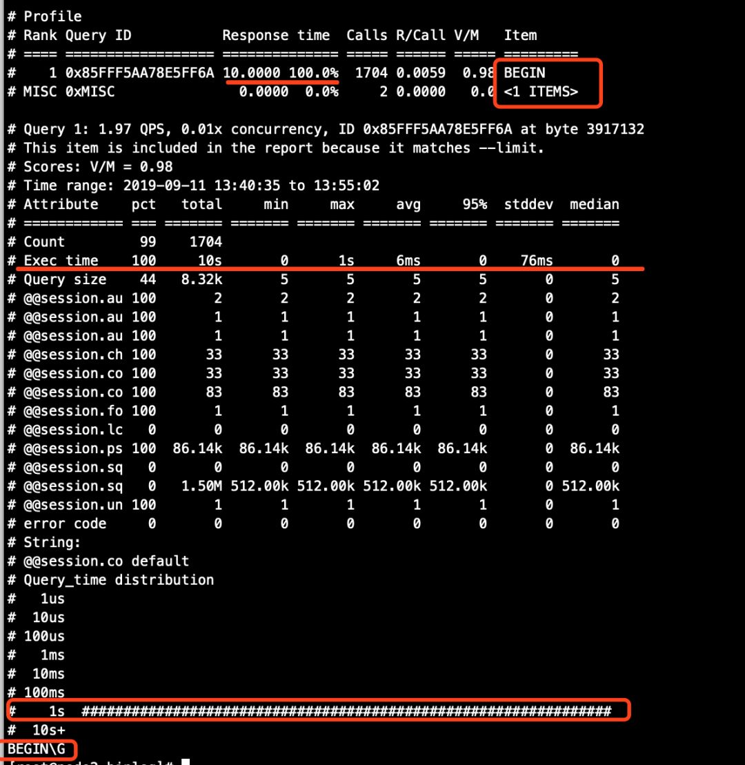 主从库各自先查看一下慢查询日志、解析binlog,并分析慢查询日志(这里的步骤是为了与后续执行完成大事务后的分析结果做对比,没有对比就没有伤害嘛)。