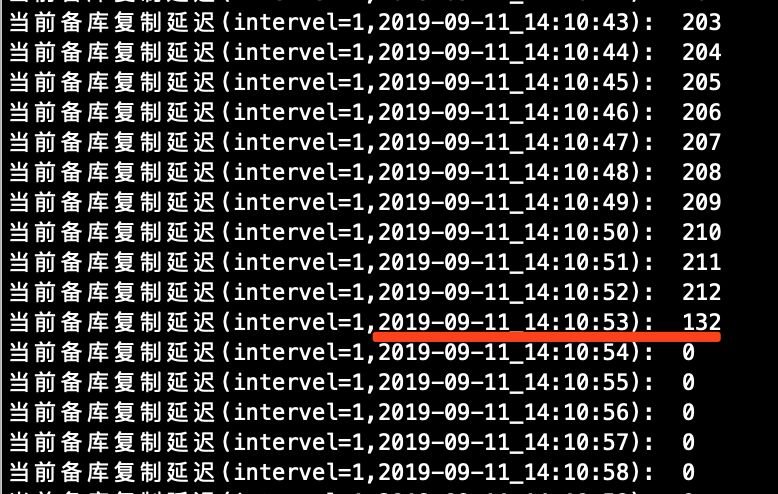 当前备库复制延迟(intervel=1,2019-09-11_13:41:33): 0