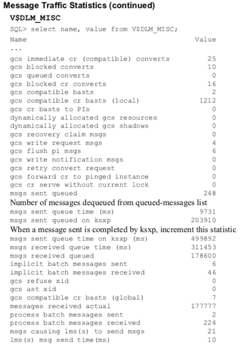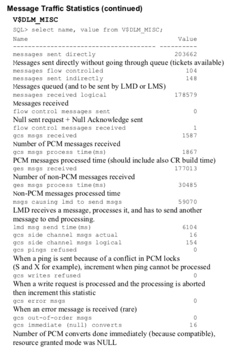 一般情况下消息流控制统计信息可以使用视图V$SYSSTAT和V$DLM_MISC(本地实例消息的统计信息)