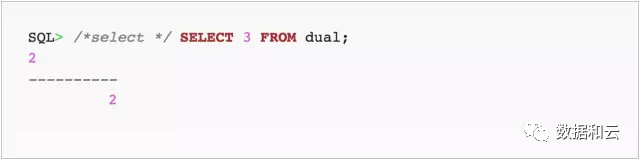 对于第二个语句而言,注释并没有对语句产生任何的影响;而对于第三个语句,实际上 Oracle 并没有把这个语句作为包含注释的语句看待,实际上 sqlplus 运行的是/,也就是将缓存中的语句再运行一次,而完全忽略了/之后的内容。