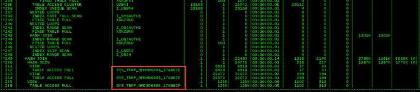 下面我们具体看下sql与执行计划,sql样子很熟悉,with as,都是数据字典表,并且在from后,很敏感想到view merge,查询每个子句都很快,那么执行计划也不用看了,直接在后加/*+materialize*/将其固化不做view merge操作,尝试一下。