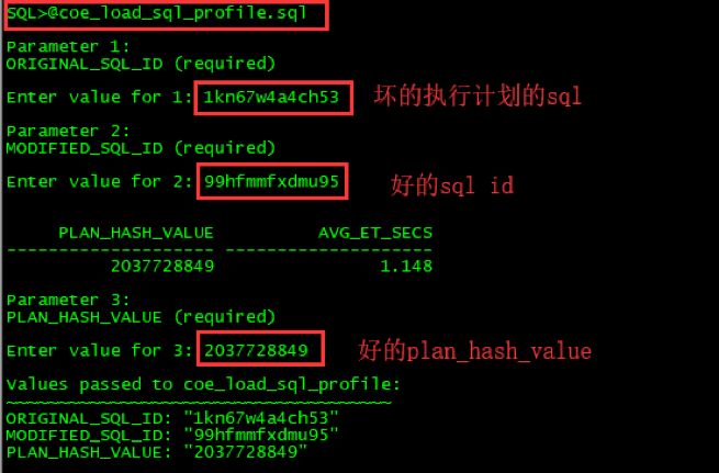 那么在不改变sql的情况下,怎么将不同sql id好的执行计划绑定到目标sql中呢?想到了coe_load_sql_profile.sql