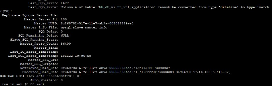 有客户咨询说,自己的从库show slave status出现了报错,报错信息显示如下: