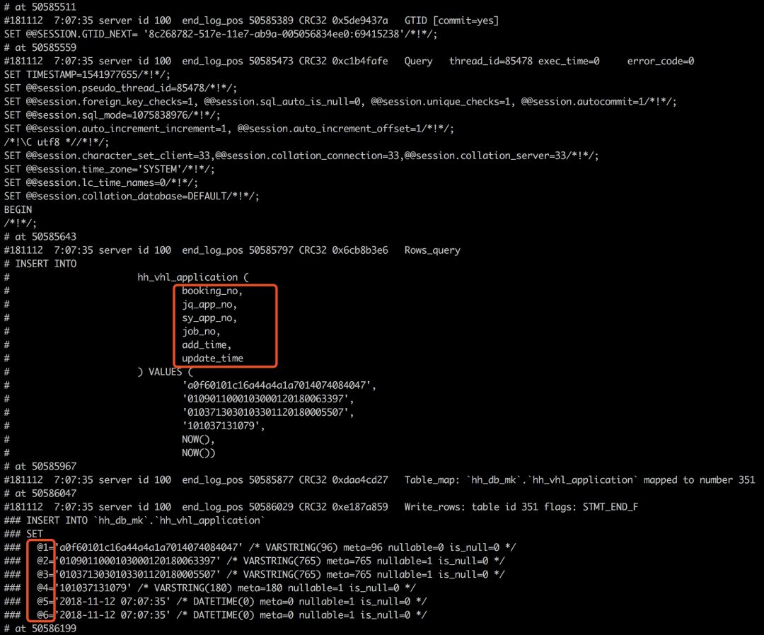 疑问客户是否有对表结构做了更改,导致了这个报错。但询问客户后,客户表示没有做任何表结构的更改。但同时向客户提出,解析下binlog看一下报错位置的sql语句。当然这个过程花了些时间。
