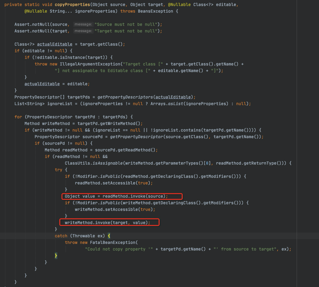 相信大家不会陌生,经常在业务代码里面出现 BeanUtils.copyProperties(source,target)