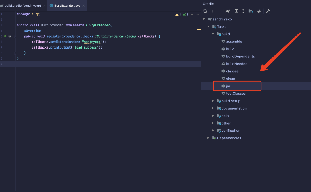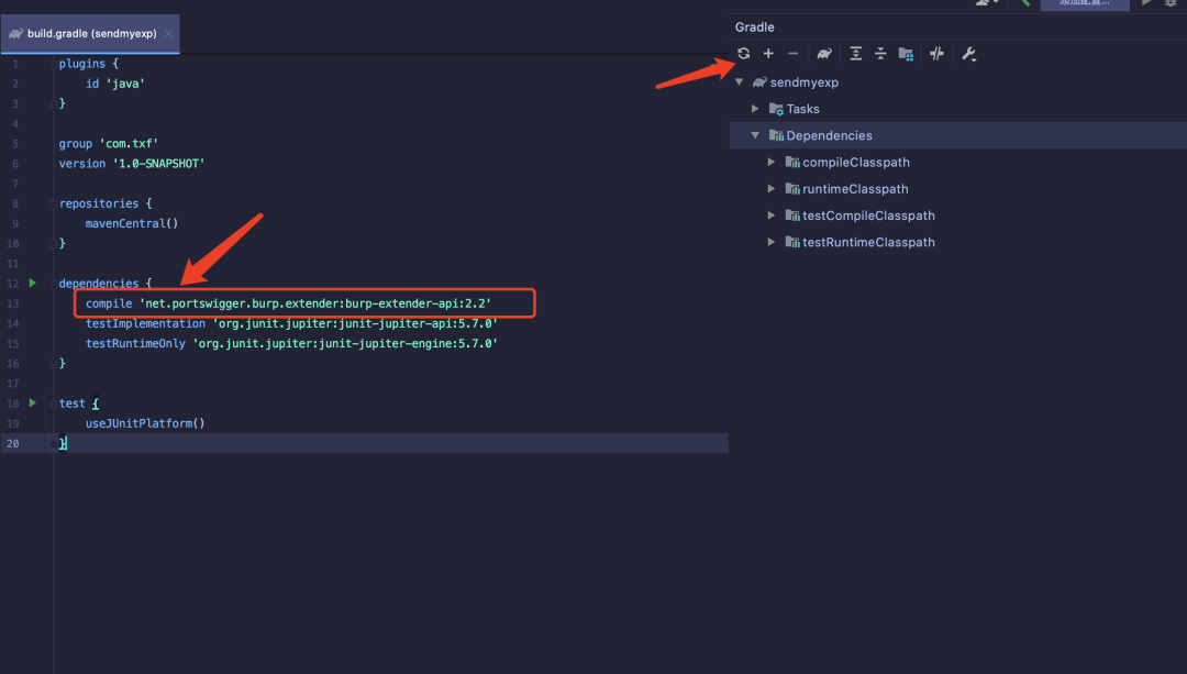 接着在 build.gradle 文件中添加Burpsuite插件的依赖(类似于pom.xml)