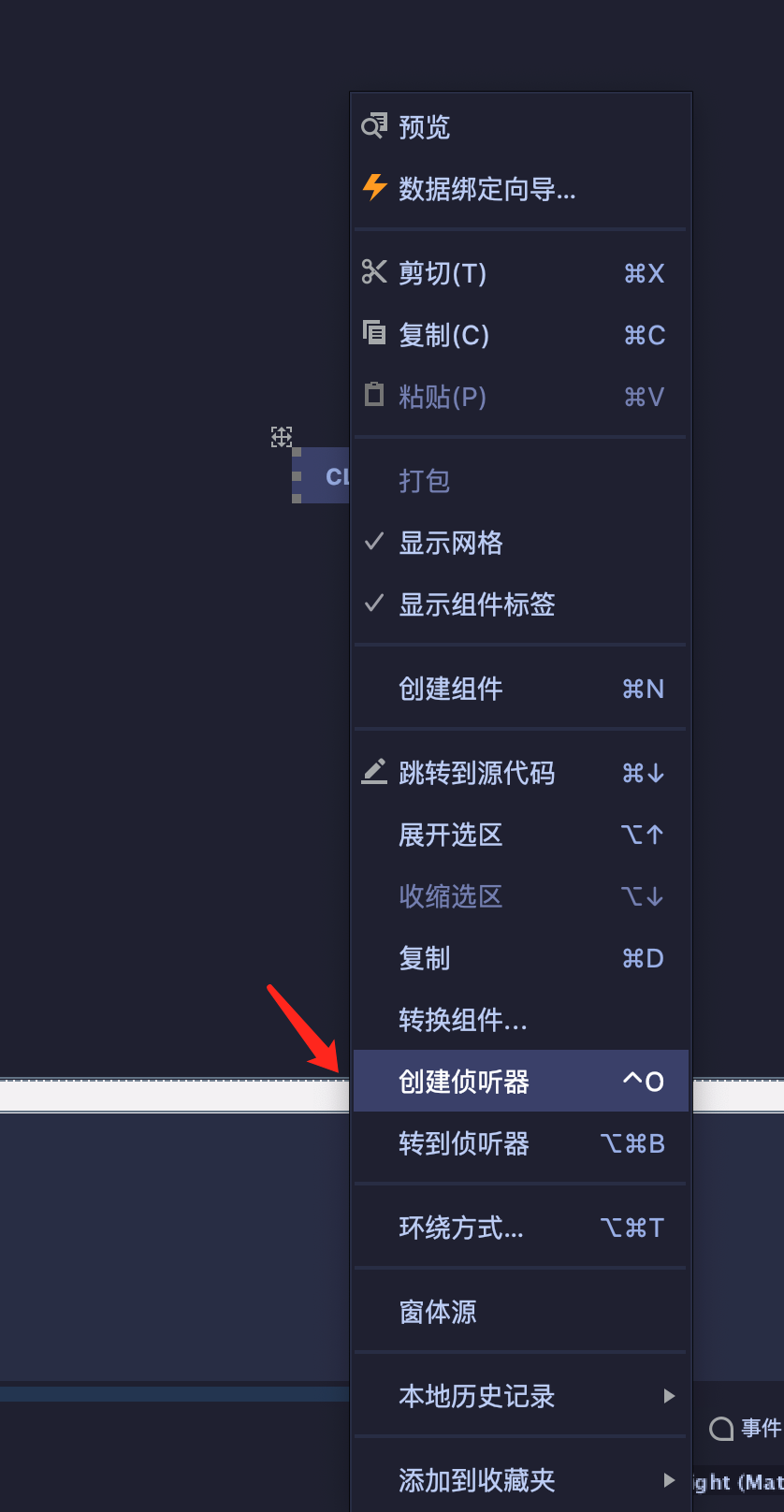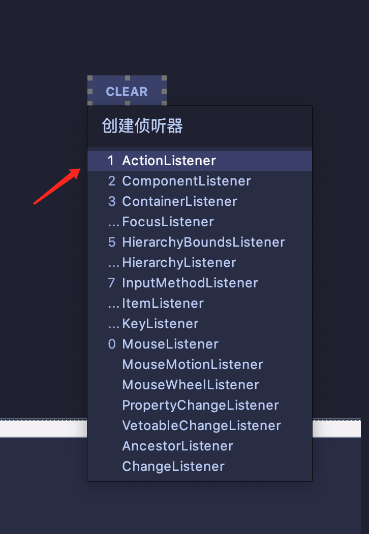 然后去实现按 "Clear"按钮清空的功能,直接右键创建侦听器